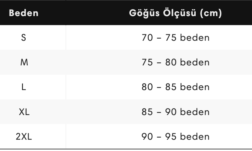 S'den XL'a kadar çeşitli beden seçeneklerimiz mevcut olup, farklı vücut tiplerine uygundur. En uygun beden için beden kılavuzumuza bakın.