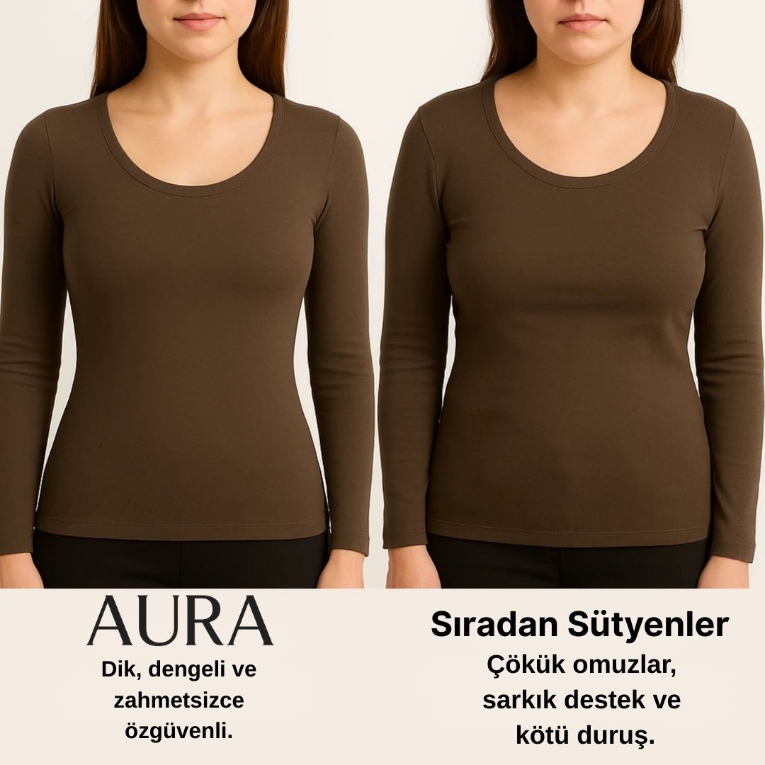 Aura, kadınların hem şık görünmesi hem de sağlıklı bir duruşa sahip olabilmesi için tasarlandı. Artık kambur durmaya son! 🌟